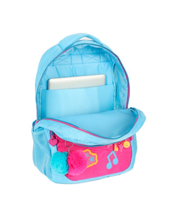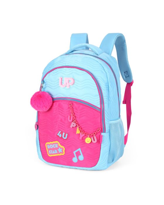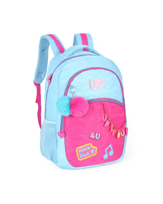 Características:Chegou a mochila dos seus sonhos! A Mochila Costas Turquesa UP4YOU é perfeita para quem adora aliar funcionalidade e muito estilo. Com um design moderno e super descolado, ela vem nas cores azul e rosa, criando uma combinação vibrante e cheia de energia. O charme fica por conta do chaveiro pompom na cor rosa, que traz um toque extra de fofura, e dos detalhes que fazem toda a diferença no visual, garantindo que você arrase por onde passar. Funcionalidade? Tem de sobra! Com 5 bolsos, você pode organizar tudo de maneira fácil e prática, desde seus materiais escolares até pequenos acessórios. O compartimento para notebook garante que seu aparelho fique seguro e protegido.Detalhes:- Marca: Luxcel;- Modelo: UP4YOU;- Referência: MJ4917IUPAZ;- Linha: Mochilas;- Tipo: Costas;- Cor: Turquesa com detalhes em rosa;- Quantidade de bolsos: 5 bolsos;- Compartimento para notebook: Até 17 polegadas;- Capacidade: Aproximadamente 24 litros;- Contém: 1 unidade do produto;- Fechamento: Zíper;- Acompanha: Chaveiro em forma de pompom na cor rosa;- Alça superior para transporte;- Zíper personalizado no formato de coração na cor rosa;- Alças reguláveis acolchoadas;- Maior espaço de armazenamento.Fabricado na China.Bolsos:- 1 bolso principal superior;- 1 bolso médio frontal;- 1 bolso pequeno frontal;- 2 bolsos laterais telados.Composição:- Material mochila: 100% Poliéster;- Forro: 100% Poliéster.Recomendações:- Evite carga excessiva de objetos para assim manter as ótimas condições de uso e durabilidade do estojo;- Limpar com pano seco ou levemente umedecido;- Não lavar, não alvejar, não secar em tambor, não passar e não lavar a seco;- Teme químicos e abrasivos;- Não deixar de molho.Medidas:- Dimensões do produto com alça retrátil: 45 x 30,5 x 17cm (AxCxP);- Peso: 400g.Garantia do fornecedor: 6 Meses contra defeitos de fabricação.* As especificações podem ser alteradas sem aviso prévio ** Imagem meramente ilustrativa.