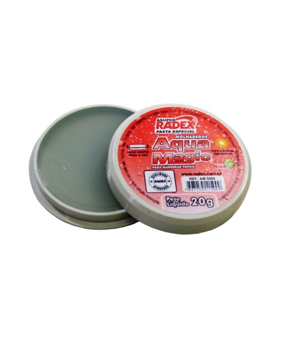 Características:Umedecedor de dedos em pasta não perecível. - Composição: ácido graxo e glicois. - Não tóxico. - Marca: Radex - Peso: 20g. - Ligeiramente perfumado. - Manunseio de papeis e papeis moeda. - Dimensões: 7 x 7 x 1 cm* Imagem meramente ilustrativa