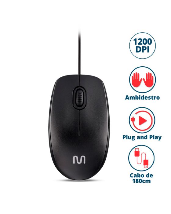Características:Se você está cansado de usar um mouse com fios que limitam o seu movimento e atrapalham a organização do seu espaço de trabalho, te apresentamos o Mouse Sem Fio MS300 da Multi, a solução perfeita para os seus problemas. Com um design slim e sem fios, este mouse proporciona liberdade total de movimento e um visual moderno para o seu setup.Experimente a sensação de cliques silenciosos e uma precisão incrível com o DPI 1200, permitindo que você seja mais produtivo e ágil em suas tarefas. A conexão 2.4GHz garante uma transmissão estável de até 10 metros de distância, evitando interferências e quedas de sinal.Detalhes:- Marca: Multi;- Modelo: MF400;- Referência: MO386;- Linha: Mouses;- Tipo: Com fio;- Cor: Preto com detalhe em cinza;- Contém: 1 unidade do produto;- Comprimento do cabo: 1,8m;- 1.200 DPI;- USB;- Design Slim;- Clique silencioso.Fabricado na China. | Validade: Indeterminada.Diferenciais:- Design Slim: Perfeito para se adequar à sua mão e proporcionar conforto durante horas de uso;- Cliques silenciosos: Evite ruídos incômodos e desfrute de um ambiente de trabalho mais tranquilo;- Conexão 2.4GHz: Transmissão estável e sem interferências, garantindo uma experiência de uso fluida;- Bateria duradoura: Pilha inclusa que dura até 12 meses, oferecendo praticidade e economia.Especificações técnicas:;- Luz do leitor: Vermelha;- Rastreamento óptico: DPI 1.200;- Número de botões: 3;- Roda de rolagem: Sim, óptica.Compatibilidade:- Windows 10 ou superior, MacOS e Linux.Energia:- Alimentação: 1 Pilha AA;- Duração das pilhas: até 5 meses.Composição:- Fabricado em plástico ABS, metal e componentes eletrônicos.Medidas:- Dimensões do produto: 11,2 x 6,35 x 3,15cm (CxLxA);- Dimensões da embalagem: 20,2 x 13,2 x 9cm (CxLxA);- Peso (com baterias): 46g.Conteúdo da embalagem: 1 Mouse Vertical Com Fio MF400 Multi.Garantia do fornecedor: 3 anos contra defeitos de fabricação.* As especificações podem ser alteradas sem aviso prévio ** Imagem meramente ilustrativa