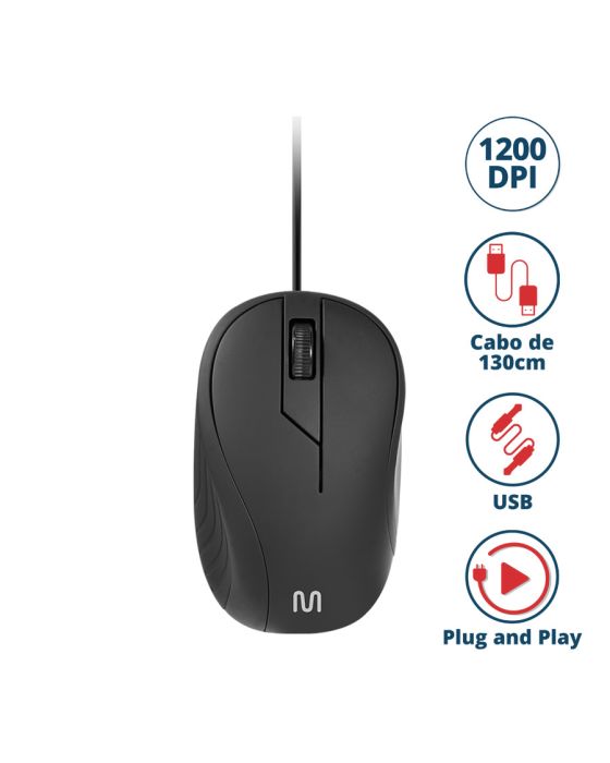 Caracteristicas:Mouse com textura emborrachada para seu maior conforto- Resolução: 1200 dpi- Plug&Play- Design Anatômico- Cor: Preto - Dimensões: 9,7cm x 3,4cm x 5,9cm (Alt x Prof x Larg)- Peso: 56g- Garantia: 3 Anos contra defeitos de fabricação* As especificações podem ser alteradas sem aviso prévio ** Imagem meramente ilustrativa.