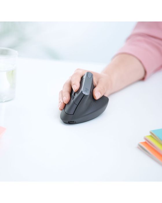 Caracteristica:O MX Vertical é um mouse ergonômico avançado que combina design criado de forma científica com desempenho elevado da série MX da Logitech. - Supere o desconforto com um mouse concebido para reduzir a tensão muscular, diminuir a pressão no pulso e melhorar a postura- O exclusivo ângulo vertical de 57° do MX Vertical reduz a pressão no seu pulso, enquanto o polegar é posicionado confortavelmente no descanso para polegar- A velocidade e a precisão do cursor podem ser personalizados no Logitech Options- Permaneça carregado por até quatro meses com carga total - e obtenha três horas de uso com uma carga rápida de um minuto. - Número de Botões: 4- Conexão: Sem fio- Valor nominal do sensor: 1000 dpi e 1600 dpi - Valores mínimo e máximo do sensor: 400 a 4000 dpi (pode ser configurado em incrementos de 50 dpi)- Distância de funcionamento sem fio: 10m - Bateria: recarregável Li-Po (240 mAh)- Duração da bateria com carga total: 4 meses e obtenha três horas de uso com uma carga rápida de um minuto. Use o cabo de carregamento USB-C para completar a bateria.- Cor: Preto- Peso do mouse: 135 g- Peso do receptor: 2 g- Dimensões do Mouse: 78,5 mm x 79 mm x 120 mm (AxLxP)- Dimensões: do receptor: 18,4 mm x 14,4 mm x 6,6 mm (AxLxP)- Compatibilidade: Windows® 10 ou superior, Windows 8, Windows 7, MacOS X 10.13.6 ou superior.- Garantia: 1 Ano de Garantia contra defeitos de fabricação através do Suporte Técnico Logitech (11) 3230-3580- Conteúdo da Embalagem: Mouse, Receptor Unifying, Cabo de carregamento USB-C (USB-A para USB-C) e Documentação do usuário.* A vida útil de uma bateria varia, dependendo do usuário e das condições de computação.* O alcance sem fio real pode variar conforme o uso, as configurações e as condições ambientais.* As especificações podem ser alteradas sem aviso prévio * Imagem meramente ilustrativa.