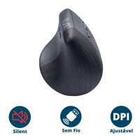Mouse Sem Fio Vertical Emborrachado Ms17 Ajustavel Mo417 Multi