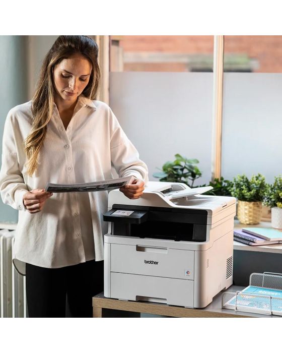 Características:A multifuncional DCP-L3560CDW é um equipamento com tecnologia LED colorido com funções digitalização, cópia e impressão de até 26 páginas por minuto (A4). Seu alimentador automático de documentos (ADF) para até 50 folhas oferece ganho de produtividade na digitalização e cópia. Economize tempo utilizando seu dispositivo móvel para imprimir e digitalizar. A conectividade simples e fácil também possibilita compartilhar o equipamento com usuários que estejam na mesma rede e os novos recursos de segurança possibilitam a impressão após o uso de senha, além de impressão no rodapé com as informações do usuário e data/hora da impressão.Detalhes:- Marca: Brother;- Modelo: Multifuncional LED em cores;- Referência: DCPL3560CDW;- Linha: Multifincional laser;- Tipo: LED Cores;- Cor: Branca com detalhes em cinza;- Voltagem/Tensão: 127V;- Contém: 1 unidade do produto;- Velocidade de impressão de até 26 ppm (A4);- Conexão Wireless, Wi-Fi Direct e Rede Cabeada;- Impressão frente e verso automática, cópia e digitalização;- Toner: Linha TN219.Impressão:- Padrão de impressão frente e verso: Sim;- Velocidade de impressão em preto A4: Máxima de 26 ppm (preto) / Máxima de 26 ppm (cores);- Velocidade de impressão em preto Carta: Máxima de 27 ppm (preto) / Máxima de 27 ppm (cores);- Emulação: BR-Script3‡, PCL5c, PCL5e, PCL6 (PCL.Tratamento de papel:- Capacidade do alimentador automático de documentos: Máximo de 50 páginas;- Capacidade de impressão frente e verso: Sim;- Entrada máxima do ADF: 215,9/355,6 mm (8,5/14 pol.) (largura/altura);- Entrada mínima do ADF: 105/148 mm (largura/altura);- Capacidade de saída de papel: 150 páginas;- Gramatura da folha - ADF: 60-105 g/m² (mín./máx.).Cópia:- Velocidade de cópia em preto A4: Máxima de 26 ppm (preto) / Máxima de 26 ppm (cores);- Velocidade de cópia em preto Carta: Máxima de 27 ppm (preto) / Máxima de 27 ppm (cores).Scan:- Digitalização frente e verso: Não;- Resolução de digitalização óptica (dpi máx.): 1200 x 1200 dpi (vidro de exposição), 600 x 600 dpi (ADF);- Velocidades de digitalização simplex A4 (preto/cor) (max. ipm): ‡ 29 ipm / 22 ipm;- Velocidades de digitalização simplex (preto/cor) (max. ipm): ‡ 29 ipm / 22 ipm.Geral:- Ciclo de trabalho mensal máximo: 40.000 páginas;- Volume de impressão mensal recomendado: Até 3.000 páginas;- Memória padrão: 512gb.Conectividade: - Compatibilidade com dispositivos móveis‡: AirPrint®, Brother iPrint&Scan, Mopria®, Wi-Fi Direct®; - Configuração sem fio com um toque: Wi-Fi Protected Setup™;- Interface(s) padrão: Wireless 802.11 b/g/n, Ethernet 10/100 Base-TX, Wi Fi Direct, Hi-Speed USB 2.0;- Certificação: Wi-Fi;Suprimentos:- Toners TN219: rendimento médio de 1.200 páginas até 4.500 páginas;- Unidade de resíduos WT229CL: Apoximadamente 50.000 páginas.Características de Pesquisa:- Função: Imprimir, digitalizar, copiar;- Capacidade de papel padrão: 250 páginas;- Tamanho do grupo de trabalho: Home Office/Small Office.Energia:- Voltagem: CA 127V, 50/60Hz;- Ruído da máquina (Pronto/Cópia): 33dB / 47dB; (Pronto/Impressão): 33dB / 47dB;- Consumo de energia - Desligado / Sono profundo / Sleep / Pronto / Impressão: 0,04W / 1,2W / 9,7W / 65W / 400W.Medidas;- Dimensões do equipamento: 41 x 44,4 x 40,1cm (LxPxA).- Peso do equipamento 23,1kg.Conteúdo da embalagem: 1 multifuncional DCPL3560CDW, 1 Cartucho de toner inicial preto (aprox. 1.000 páginas) e 1 Cartucho das cores Ciano, Magenta, Amarelo (aprox. 1.000 páginas cada), 1 conjunto de unidades cilindro DR219CL (20.000 páginas), cabo de alimentação CA, guia de configuração rápida.Garantia do fornecedor: 12 meses contra defeitos de Fabricação.* As especificações podem ser alteradas sem aviso prévio ** Imagem meramente ilustrativa.