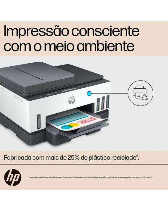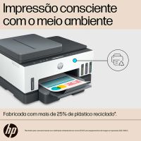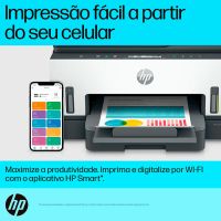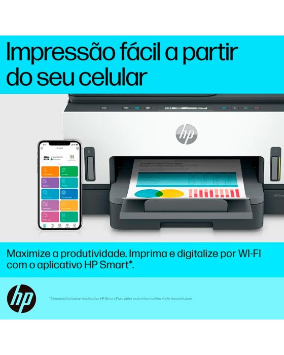 Características:Economize em custos de impressão:Graças ao alimentador de documentos de até 35 páginas e à impressão frente e verso automática, imprima enquanto economiza.Fácil de instalar, fácil de usar:A impressão ficou ainda mais fácil com botões retroiluminados que orientam o processo de impressão.Aceita uma grande variedade de papéis para todas as necessidades:Imprima em uma variedade de opções de papel, incluindo papel comum, papel fotográfico HP, papel HP Matte Professional ou papel para brochuras, papel para apresentações e outros papéis foscos e brilhantes para jato de tinta.Recarga simples de tinta:Garrafas à prova de derramamento codificadas por cores e sem complicações para fácil recarga. Monitore e mantenha facilmente os níveis de tinta com sensores de tinta integrados.Impressão de fotos em cores vibrantes:Destaque as suas criações, projetos e memórias com cores cativantes e brilhe com a impressão fotográfica sem margens.Detalhes:- Marca: HP;- Modelo: Smart Tank 754;- Referência: 2H0A6A;- Linha: Impressora Multifuncional;- Cor: Branco/Cinza/Preto;- Contém: 1 unidade do produto;- Funções: Impressão, digitalização, cópia, ADF, sem fio;- Fácil de instalar e de usar;Impressão:- Tecnologia de impressão: Preto (ISO): Até 12 ppm Colorido (ISO): Até 5 ppm;- Velocidade de impressão, preto: 11 - 20;- Velocidade de impressão, cor: <=10;- Cor: Cor;- Ciclo de trabalho (mensal, A4): Até 5.000 páginas;- Volume mensal de páginas recomendado: 400 a 800;- Resolução: Até 4800 x 1200 dpi otimizados em cores, impressos a partir de um computador e 1200 dpi de entrada;- Velocidade p/b: Até 15 ppm;- Velocidade colorida: Até 9 ppm;- Profundidade de bits/níveis de escala de cinza: 24 bits;- Impressão frente e verso: Automático.Cópias:- Cópias, no máximo: Até 99 cópias;- Velocidade de cópia: Sim;- Configurações de redução / ampliação de cópia: 25 até 400%;- Definições de copiadora: Número de cópias, redimensionar, qualidade, mais claro/mais escuro, tamanho do papel, tipo de papel, cópia de identidade;- Capacidade de cópia em cor: Sim.Manuseio do Papel: - Bandejas para papel, máximo: 1;- Bandejas para papel, padrão: 1;- Precisão do alinhamento vertical: +/- 0,02mm.Scanner:- Tamanho da digitalização (ADF), máximo: 216 x 356 mm;- Formatos dos arquivos digitalizados: BMP, JPEG, TIFF, PDF, PNG;- Digitalização em cores: Sim;- Capacidade do alimentador automático de documentos: Padrão, 35 folhas;- Tipo de scanner: Base plana, alimentador automático de documentos;- Tamanho da digitalização, máximo: 216 x 297 mm;- Níveis de escala de cinza: 256;- Modos de entrada de digitalização: Copiar no painel frontal; Software HP; EWS;- Profundidade de bits: 24 bits;- Versão Twain: Versão 2.1- Tecnologia de digitalização: Sensor de imagem por contato (contact image sensors - CIS);- Opções de digitalização (ADF): Só de um lado.Conectividade:- Conectividade, padrão: USB 2.0 de alta velocidade; Wi-Fi; Bluetooth LE; LAN;- Capacidades de rede: Sim, via Ethernet incorporada; Wi-Fi;- Capacidade sem fios: Sim, Wi-Fi de banda dupla 2,4/5G, Wi-Fi Direct, Bluetooth de baixa energia;- Capacidade de impressão móvel: Apple AirPrint; Mopria certified; HP Print Service Plugin (Android printing); HP Smart app; Wi-Fi Direct Printing.Suprimentos: - M0H54AL Cartucho de tinta Original HP Ciano GT52: rendimento médio até 8.000 páginas;- M0H55AL Cartucho de tinta Original HP Magenta GT52: rendimento médio de até 8.000 páginas;- M0H56AL Cartucho de tinta Original HP Amarela GT52: rendimento médio de até 8.000 páginas;- 1VV21AE Cartucho de tinta Original HP Preto GT53XL: rendimento médio de até 6.000 páginas;- Bocais da cabeça de impressão: 704 (preto), 588 (colorido).Energia:- Alimentação: Voltagem de entrada: 100 até 240 VCA (+/- 10%), 50/60 Hz (+/- 3 Hz);- Consumo de energia: 0.1 watts (off);1.10 watts (sleep);- Tipo de fonte de alimentação: Interno.Memória:- Memória, padrão: 256Mb;- Memória, máximo: 256Mb;- Noat sobre memoria estándar: Não atualizável;- Velocidade do processador: 800 MHz.Compatibilidade:- Requisitos mínimos do sistema para Macintosh: macOS v10.14 Mojave, macOS v10.15 Catalina, macOS v11 Big Sur; HD de 2 GB; Necessário acesso à Internet;- Requisitos mínimos do sistema: Windows 10, 7: 32 bits ou 64 bits, 2 GB de espaço disponível no disco rígido, conexão com a internet, Internet Explorer.Medidas:- Dimensões do produto: 42,75 x 36,4 x 24,3cm (CxLxA);- Dimensões do produto aberto: 45,35 x 44,07 x 24,96cm (CxLxA);- Dimensões da embalagem: 48,4 x 28,4 x 41cm (CxLxA);- Peso do produto: 7,7kg;- Peso da embalagem: 10,7Kg.Conteúdo da embalagem: 1 Impressora multifuncional HP Smart Tank 754, 1 Frasco de tinta HP GT53XL preto original, 1 Frasco de tinta HP GT52 ciano original, 1 Frasco de tinta HP GT52 magenta original, 1 Frasco de tinta HP GT52 amarelo original, 1 Panfleto de cuidados com a tinta, 1 Guia de configuração, 1 Guia de referência, 1 Panfleto regulamentar, 1 Cabo de alimentação e 1 frasco de tinta preta GT53XL extra original de 135 ml. Garantia do fornecedor: até 2 anos sendo, garantia padrão de 1 ano e em conjunto com a garantia complementar HP CarePack de 1 ano, mediante registro prévio (até 60 dias corridos após a compra) e confirmação no site www.hp.com/go/promocaocarepack.* As especificações podem ser alteradas sem aviso prévio ** Imagem meramente ilustrativa.
