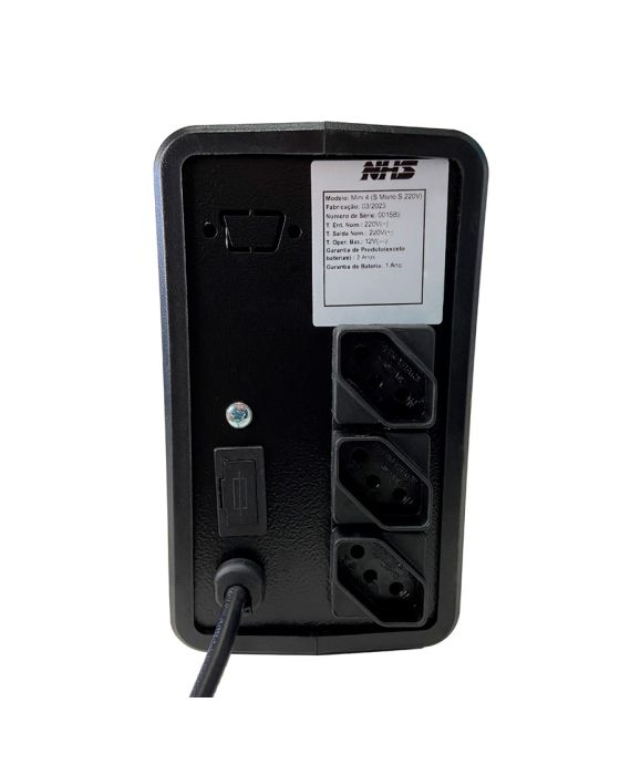 Características:Seus equipamentos sempre ligados e seguros com os Nobreaks, Estabilizadores e Acessórios da NHS. Os produtos NHS atendem equipamentos de simples aplicações até os de alta complexidade. Confira nossas linhas de produtos e encontre a solução ideal para sua necessidade. NHS: o equilíbrio entre tecnologia, qualidade e custo-benefício.Detalhes:- Marca: NHS.- Modelo: Mini 4 S.- Referência: 90.A0.004001.- Linha: Nobreak.- Cor: Preto.- Voltagem: 220V.- Contém: 1 unidade do produto.- 5 em 1: Nobreak, Estabilizador, Transformador, Filtro de linha e Protetor Eletrônico nas tomadas.- Tomadas: Possui 3 tomadas.- Com memória Flash interna.Ideal para: - Computadores, Notebooks, Roteadores, Scanners, Impressoras, CFTV e monitoramento remoto, Interfones, Relógio ponto e Instrumentos musicais.Protege equipamentos de:- Sobretensão da rede elétrica, subtensão da rede elétrica, sendo possível configurar, surtos de tensão na entrada, sobre e subfrequência na entrada, descarga profunda da bateria, carga excessiva de bateria, curto circuito na saída, sobrecarga na saída e desligamento acidental devido ao botão temporizado.Entrada:- Tensão de entrada nominal: 220V.- Faixa de frequência: 45 Hz - 65Hz.- Faixa de tensão: 187V - 246V.- Sincronismo com a rede: Sistema PLL.Saída:- Tensão saída nominal: 220V.- Frequência: 60Hz.- Formas de onda: Semi-Senoidal.- Número de tomadas: 3 Tomadas padrão NBR 14136.- Faixa de tensão de saída em inversor: 220V +-5%.Potência:- Potência nominal (VA/W): 400VA/180W.- Potência de pico: 200W.Bateria: - Quantidade: 1x7Ah.- Tipo de bateria: Selada tipo VRLA livre de manutenção e à prova de vazamento.- Tensão de operação: 12V.- Tempo de recarga: 10 horas após 90% descarregada.- Gerenciamento de bateria que avisa quando a bateria deverá ser substituída.Autonomia:- Carga típica: 7min.- Meia carga: 19min.- Plena carga: 7min.Tecnologia e funções:- Tecnologia Line Interactive.- Tecnologia de montagem SMD que garante alta confiabilidade e qualidade ao nobreak.- Função True RMS com melhor qualidade na regulação de saída.- Função Mute – pressionar o botão frontal 6 vezes para inibir ou habilitar a campainha.Proteção: - Proteção contra sobrecarga e curto-circuito no inversor.- Proteção contra sub e sobretensão na rede elétrica com retorno e desligamento automático.- Proteção contra descarga profunda de bateria.- Proteção contra surtos de tensão através de varistor óxido metálico que atenua efeitos de descargas atmosféricas.Rearme:- Rearme automático – Se o Nobreak sofrer um auto desligamento religará automaticamente com o retorno da rede elétrica.- Rearme automático de proteção – Se o Nobreak entrar em modo proteção religará automaticamente executando até três tentativas.Medidas:- Dimensões: 29,2 x 9,8 x 17cm (CxLxA).- Peso: 5,1kg.Composição: - Gabinete em plástico ABS alto impacto anti-chama.Conteúdo da embalagem: 1 Nobreak 400VA Mini 4 220V NHS e 1 manual do usuário.Garantia do fornecedor: Garantia do produto exceto baterias: 2 anos, Garantia Bateria: 1 ano.* As especificações podem ser alteradas sem aviso prévio ** Imagem meramente ilustrativa