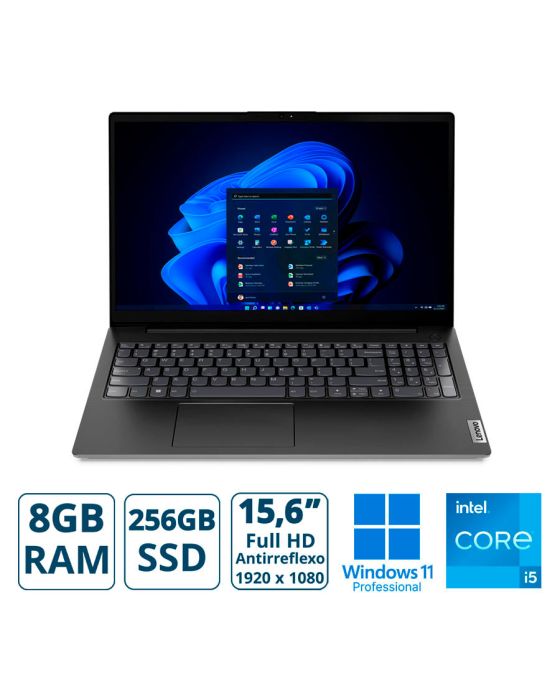 Características: O Notebook Lenovo V15 G3 é uma escolha versátil para profissionais em movimento que buscam um dispositivo confiável para as suas necessidades diárias!Possui um potente processador I5, oferecendo uma experiência ágil para os mais exigentes, uma tela Full HD de 15,6 polegadas proporcionando uma melhor visualização e nítida, e uma memória de 8Gb de RAM e um SSD de 256Gb sendo um notebook que entrega velocidade e capacidade de armazenamento proporcionando ao usuário inicializações rápidas do sistema e resposta ágeis para aplicativos, além de já contar com o Windows 11 Pro pré-instalado, oferecendo recursos avançados de segurança e produtividade.Design, elegante e portátil, torna o Lenovo V15 G3 a melhor escolha.Detalhes:- Marca: Lenovo;- Modelo: 82UM0007BR;- Linha: Notebook;- Cor: Preto;- Contém: 1 unidade do produto;- Sistema Operacional: Windows;- Versão do Sistema Operacional: 11 Pro;- Teclado: Sem retroiluminação, Padrão brasileiro + teclado numérico;- Disposivito Apotador: TouchPad;- Medidas: 35,9 x 23,6 x 1,99cm (CxPxA);- Peso: 1,7 kg.Tela:- Polegadas: 15.6 Full HD.- Resolução: 1920 x 1080.- Tipo de tela: Antirreflexo.Processador:- Família de processador Processador Intel® Core i5 12ª geração;- Processador Intel® Core™ i5-1235U, 10C (2P + 8E) / 12T, P-core 1,3 / 4,4 GHz, E-core 0,9 / 3,3 GHz, 12 MB).Placa de vídeo:- Gráficos integrados Intel® Iris® Xe funcionam como gráficos UHD.Áudio:- Chip de áudio: Áudio de alta definição (HD), codec Realtek® ALC3287;- Caixas de som: Alto-falantes estéreo, 1,5 W x2, Dolby® Audio™.Bateria e Alimentação:- Bateria: 38 Wh integrado;- Carregador: Ponta redonda de 65 W (3 pinos).Câmera:- Câmera 720p HD.- Porta de privacidade.Armazenamento:- Memória RAM: 8GB DDR4-3200 soldado;- Armazenamento: SSD de 256 GB M.2 2242 PCIe® 4.0x4 NVMe® + compartimento de disco rígido vazio;- Slots de memória: Uma memória soldada à placa de sistema, um slot DDR4 SO-DIMM, compatível com canal duplo;- Memória máxima (Memória expensível): Oferta DDR4-3200 de até 16 GB (8 GB soldados + 8 GB SO-DIMM);- Frequência da Memória: 3200 MHz;- Suporte de armazenamento: Modelos com bateria de 38Wh: até duas unidades, 1x HDD de 2,5 + 1x SSD M.2 / HDD de 2,5 até 1TB / SSD M.2 2242 até 1TB;- Slot de armazenamento: Modelos com bateria de 38Wh: um slot para unidade de 2,5 + um slot M.2 / Um slot para HDD SATA de 2,5 / Um slot M.2 2280 PCIe® 4.0 x4.Conectividade:- WLAN + Bluetooh: 802.11ac 2x2 Wi-Fi) e Bluetooth® 5.1; - Ethernet: 100/1000M (RJ-45).Portas:- 1 USB 2.0;- 1 USB 3.2 Geração 1;- 1 USB-C® 3.2 Gen 1 (suporta transferência de dados, Power Delivery 3.0 e DisplayPort™ 1.2);- 1 HDMI® 1.4b;- 1 Conector combinado para fone de ouvido/microfone (3,5 mm);- 1 Ethernet (RJ-45);- 1 conector de alimentação.Certificações:- Certificações Verdes: ENERGY STAR® 8.0 / EPEAT™ com registro prata / ErP Lote 3 / Compatível com RoHS / TÜV Rheinland® Low Blue Light (solução de software) / Teste militar MIL-STD-810H aprovado.Serviço:- Atualização incluída: Complemento de bateria selada de 1 ano, atualização de suporte Premier de 1 ano a partir da base 0Y.Conteúdo da embalagem: 1 Notebook, 1 Cabo de Força, Manuais.Garantia do fornecedor: 12 meses contra defeitos de fabricação.* As especificações podem ser alteradas sem aviso prévio ** Imagem meramente ilustrativa.