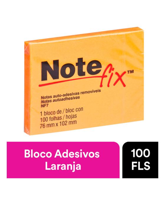 Características:Suas folhas são reposicionáveis, ou seja, possuem adesivo de qualidade 3M, que permite que sejam retirados e recolocados, sem danificar papéis ou outras superfícies, sem deixar resíduos do adesivo e sem perder a eficiência na fixação.Detalhes:- Marca: Notefix™;- Fabricante: 3M;- Modelo: Bloco Adesivo Notefix™;- Referência: HB004116081;- Linha: Blocos Adesivos;- Cor: Laranja;- Quantidade de folhas: 100 folhas;- Quantidade de blocos: 1 bloco;- Contém: 1 unidade do produto com 1 bloco de 100 folhas;- Medidas: 76 x 102mm (7,6 x 10,2cm);- Folhas reposicionáveis;- Notas adesivas com qualidade 3M;- Permite deixar mensagens de forma prática e rápida.Aplicações sugeridas:- Ideal para fazer anotações e lembretes.Composição:- Papel tipo superbond com adesivo Acrílico sintético, removível e reposicionável.AVISO!- O adesivo pode deixar marcas em algumas superfícies ou remover tinta. Teste antes de usar!Conteúdo da embalagem: 1 Notefix 657 Laranja 76x102mm 100 Folhas 3m.* As especificações podem ser alteradas sem aviso prévio ** Imagem meramente ilustrativa.