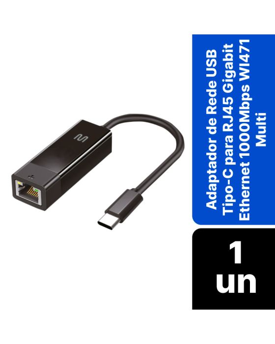 Características:Com o Adaptador de Rede Ethernet Gigabit USB Tipo-C, possui alta taxa de velocidade de transferência, sistema Plug & Play, leve e portátil ideal para uso em Ultrabooks e Notebooks!Detalhes:- Marca: Multi;- Modelo: Adaptador de rede USB Tipo-C para RJ45 Multi;- Referência: WI471;- Linha: Adaptador de Rede;- Cor: Preto;- Quantidade de portas: 5 portas;- Contém: 1 unidade do produto;- Conexão USB Tipo-C;- Gigabit Ethernet 1000Mbps;- Plug & Play.Fabricado na China | Validade indeterminada.Geral:- Interface: USB Tipo-C;- Instalação: Plug e Play;- Transmissão máxima de transmissão de rede: 1000Mbps;- Comprimento do cabo: 15cm;- Não transmite dados, siomente carregamento.Portas:- 1 RJ45 100Mbps.Suporta: - Auto MDIX;- Gigabit Ethernet Full Duplex e Half Duplex;- Modo de suspenção e ativação remota via Link-up e Magic Packs.Composição:- Fabricado em plástico ABS e componentes eletrônicos.Medidas:- Dimensões da embalagem: 17 x 7,8 x 1,7cm (CxLxA);- Peso: 44g.Conteúdo da embalagem: 1 Adaptador de Rede Ethernet Gigabit USB Tipo-C para RJ45.Garantia do fornecedor: 1 ano contra defeitos de fabricação.*As especificações podem ser alteradas sem aviso prévio ** Imagem meramente ilustrativa.