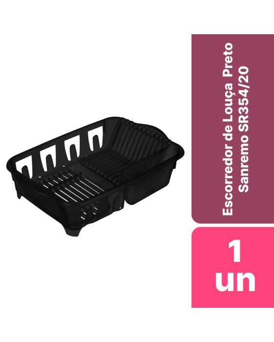 Características:Escorredor de louças grande com design moderno e fácil de lavar. Uma peça de utilidade que não pode faltar na sua casa ou no seu restaurante: possui divisórias internas que indicam a colocação das peças. É leve, resistente e higiênico.Detalhes:- Marca: Sanremo;- Modelo: Casar;- Referência: SR354/20;- Linha: Escorredor de Louças Plástico;- Cor: Preto;- Formato: Retangular;- Contém: 1 unidade do produto;- Divisórias que indicam a colocação das louças;- Design moderno;- Fácil de lavar;Ideal para:- Ideal para cozinhas e copas.Divisórias:- 11 divisórias para pratos;- 2 Divisória para talheres;- 1 Divisória grande para demais utensílios.Composição: - Fabricado em Plástico.Medidas:- Dimensões do produto: 45,8 x 31,8 x 10,5cm (CxLxA);- Peso: g.* As especificações podem ser alteradas sem aviso prévio ** Imagem meramente ilustrativa.