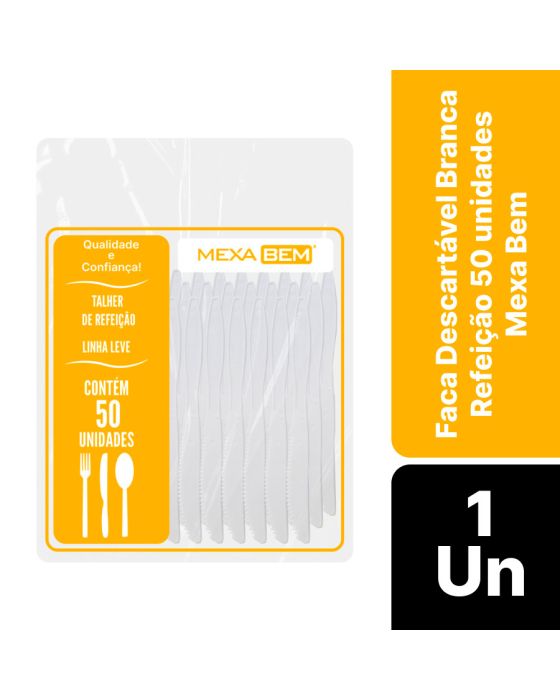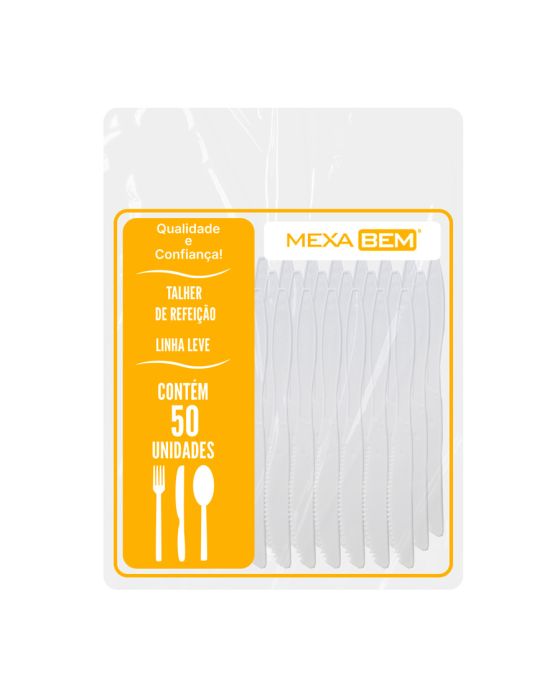 Faca Descartavel Branca Refeicao C/50 Mexa Bem