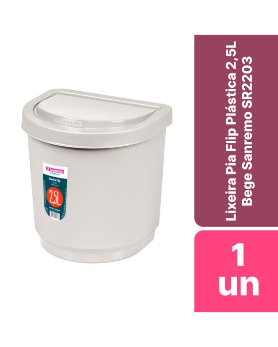 Cesto De Lixo Pia Flip Plastica 2,5l Bege Sanremo Sr2203