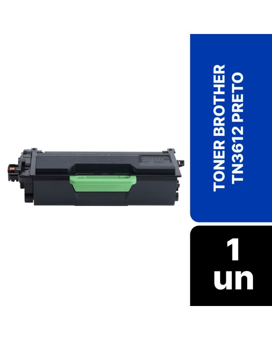 Características:Os cartuchos Brother oferecem o melhor em qualidade para suas impressões. Possui ultra rendimento de 18.000 páginas para que não precise se preocupar com a troca do toner e imprimir todos os seus documentos do dia a dia. Com balanceamento ideal para proporcionar regularidade no seu fluxo e na distribuição da tinta pelo papel.Detalhes:- Marca: Brother;- Modelo: TN3612;- Linhas: Toners; - Cor: Preto;- Contém: 1 unidade do produto;- Tecnologia de impressão: Laser;- Rendimento por página: Aproximadamente 18.000 páginas;- Cartucho de toner de ultra rendimento;- Impressões de alta definição;- Produto Original.Impressoras Compátiveis:- Modelos Laser HLL5212DN, Laser HLL5212DW, Laser HLL6412DW, Laser DCPL5512DN, Laser DCPL5662DN, Laser MFCL5912DW e Laser MFCL6912DW.Medidas:- Dimensões embalagem: 36 x 15 x 24,5cm (CxLxA).Descarte de Cartuchos e Toners:- Você pode fazer o descarte com ajuda do ReCiclo, um projeto da Contabilista através da Contabilista Responsável, basta enviar os seus resíduos para a nossa Central de Distribuição*, se você é de Curitiba ou de Joinville, pode ir até uma de nossas lojas ou preencher o formulário disponível no site para solicitar retirada de materiais.Acesse o Link para verificar as marcas que reciclamos e nossos endereços: https://www.contabilistaresponsavel.com.br/reciclo.* Enviar conteúdo aos cuidados do Setor de Reciclagem.** Atenção: Cartuchos e Toners compatíveis não entram no descarte do ReCiclo, apenas suprimentos originais de nossos parceiros (confira a lista no link acima).*** Caso a Contabilista receba cartuchos e toners de outras marcas, não poderemos nos responsabilizar pela reciclagem e devolveremos ao remetente.Conteúdo da embalagem: 1 Cartucho de toner e 1 Guia de reciclagem.* As especificações podem ser alteradas sem aviso prévio ** Imagem meramente ilustrativa.
