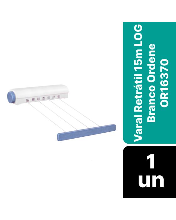 Características:O Varal Retrátil de Plástico Log Ordene é ideal para pequenos espaços. Acompanha buchas, parafusos e escápula para instalação, além de molde para instalação em sua embalagem.Detalhes:- Marca: Ordene;- Modelo: Log;- Referência: OR16370;- Linha: Varais;- Tipo: Retrátil;- Cor: Branco/Roxo;- Capacidade: Suporta até 6kg;- Cordas: possui 4 cordas com 3,6m cada;- Contém: 1 unidade do produto;- Acompanha: 4 parafusos, 4 buchas e 4 parafusos escápula;- Ideal para pequenos espaços;- Possui molde de instalação na embalagem.Indústria Brasileira | Validade Indeterminada.Onde usar:- Pode ser utilizado na cozinha, lavanderia, garagem e área de serviço.Ideal para:- Ideal para peças de roupas leves.Instalação:- Utilize o molde desenhado na embalagem para furar a parede e fixar o Log Varal Retrátil. Na parede em frente do varal, fixe os parafusos escápula, eles irão segurar a base com os cordões;- Após fixar o Log Varal Retrátil, para utilizar basta puxar a base, esticando os corões e encaixá-la nos parafusos escápula fixados na parede em frente ao varal;- Atenção: para maior segurança, sempre verifique se a trava para cordas está encaixada, principalmente se as cordas não estiverem esticadas.Ferramentas necessárias:- Furadeira e broca 6mm;- Chave de fenda;- Lápis;- Nível;- Molde de furação.Composição:- Fabricado em Poliestireno e Poliéster.Medidas:- Dimensões do produto: 29,5 x 6,3 x 5,9cm (CxLxA).* As especificações podem ser alteradas sem aviso prévio ** Imagem meramente ilustrativa.