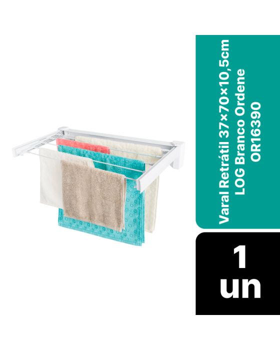 Varal Retratil 37x70x10,5cm Log Branco Ordene Or16390