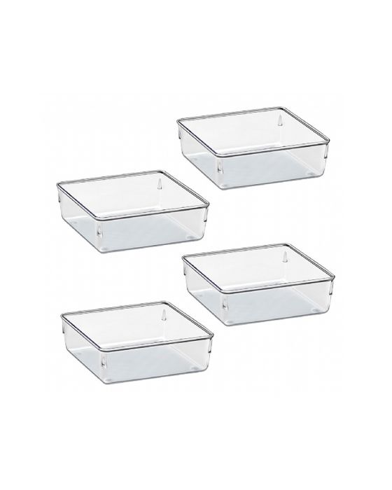 Caracteristicas:Perfeito para sua gaveta da bagunça ou organizar o que você precisar com fácil acesso e onde desejar: ótimo para cozinha, banheiro, material de artesanato, oficina e muito mais, quer seja dentro de gavetas. em cima de bancadas, mesas, prateleiras ou dentro de armários.Detalhes:- Marca: Acrimet.- Modelo: 973.0- Linha: Organizadores.- Cor: Cristal.- Medidas: 16 x 16 x 5,5cm.- Contém: 4 peças do produto.- Composição: Em plástico de alta qualidade transparente.- Trabsparente para facilitar a visualização dos objetos. - Modular, para se adequar a vários tamanhos de gavetas e criar conjuntos.- Fácil de limpar.Ideal para:- Cozinha, banheiro, material de artesanato, oficina e muito mais, quer seja dentro de gavetas. em cima de bancadas, mesas, prateleiras ou dentro de armários.* As especificações podem ser alteradas sem aviso prévio ** Imagem meramente ilustrativa.