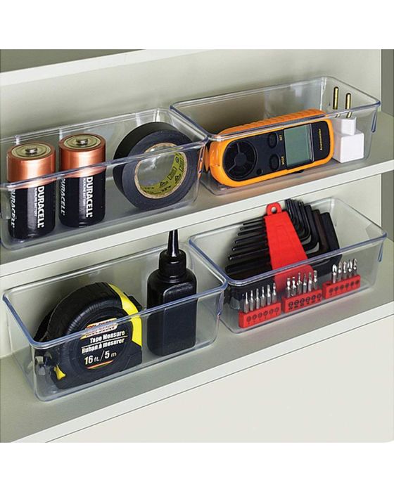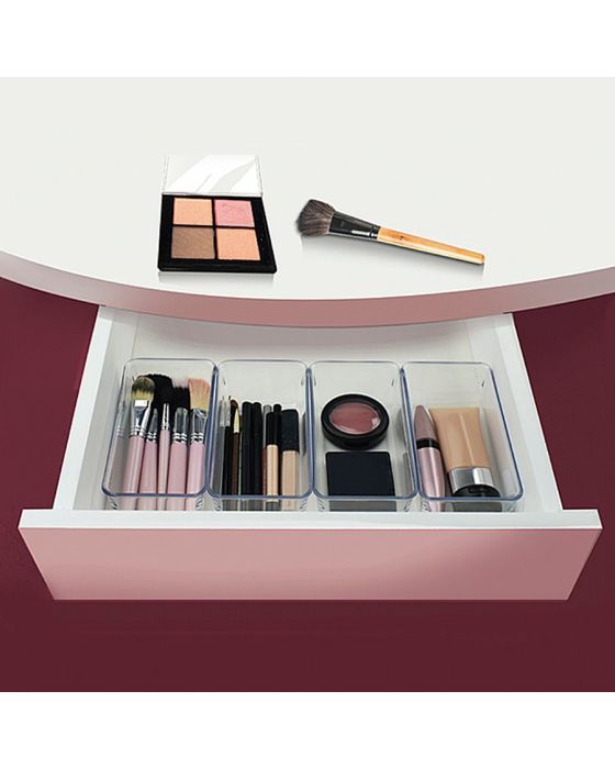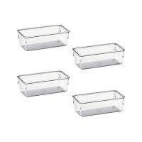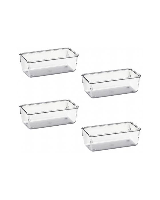Caracteristicas:- Em plástico de alta qualidade, transparente para facilitar a visualização dos objetos.- Modular, para se adequar a vários tamanhos de gavetas e criar conjuntos.- Perfeito para sua gaveta da bagunça ou organizar o que você precisar com fácil acesso e onde desejar: ótimo para cozinha, banheiro, material de artesanato, oficina e muito mais, quer seja dentro de gavetas. em cima de bancadas, mesas, prateleiras ou dentro de armários.- Fácil de limpar- Dimensões (CxLxA): 16 x 8 x 5,5cm- Contém 4 peças* As especificações podem ser alteradas sem aviso prévio ** Imagem meramente ilustrativa.