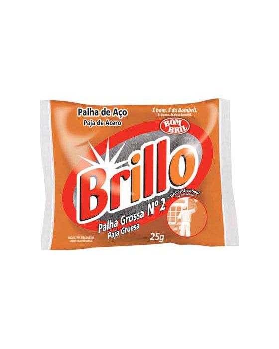 CaracterísticasPalha de Aço Brillo Nº 2A Palha de Aço Nº2 é poderosa na remoção de resíduos e manchas, pode ser usada para remover excesso de tinta e gesso, limpar acabamentos de madeira, pisos de madeira e assoalho, remover ferrugem, papel de parede e verniz. Remove resíduos e manchas em superfícies de metal, removendo até riscos de utensílios em cobre e bronze.Palha de Aço Número 2 Grossa - Contém uma unidade de 25g por pacote - Marca: Brillo - A melhor palha de aço, remoção total - Fabricante: Bombril - Embalagem com 25g Curiosidade: Há três tipos de fios, um para cada tipo de aplicação:Palha de Aço nº 0: Possui fios mais finos e é ideal para limpeza em geral na construção civil.Palha de Aço nº 1: Por possuir fios médios, é utilizada para retirar o excesso de tinta, aparar gesso, verniz e canos de ferro.Palha de Aço nº 2: Com fios mais agressivos, é indicada para limpeza pesada de construção e reformas. * As especificações podem ser alteradas sem aviso prévio ** Imagem meramente ilustrativa