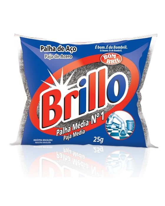CaracterísticasPALHA DE ACO BRILLO MEDIA N1 BOMBRIL - A melhor palha de aço, remoção total! - As palhas de aço Brillo são incríveis e dão uma ajuda e tanto aos trabalhos domésticos - Limpam, removem resíduos e manchas, restauram e dão polimento a metais, e auxiliam na limpeza pesada - Use Brillo para acabamentos em móveis, excessos de tinta, gesso e cimento em revestimentos de pedra, manchas em pisos de madeira, na camurça e no couro - É ótimo também para restaurar e polir metais com brilho - Embalagem com 25g - Contém uma unidade - Fabricante: Bombril S/A - Marca: Brillo - Peso aprox: 28grs - Dimensões em CM: 4 x 12 x 10Curiosidade: Há três tipos de fios, um para cada tipo de aplicação:Palha de Aço nº 0: Possui fios mais finos e é ideal para limpeza em geral na construção civil.Palha de Aço nº 1: Por possuir fios médios, é utilizada para retirar o excesso de tinta, aparar gesso, verniz e canos de ferro.Palha de Aço nº 2: Com fios mais agressivos, é indicada para limpeza pesada de construção e reformas. * As especificações podem ser alteradas sem aviso prévio ** Imagem meramente ilustrativa