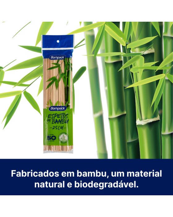 Características:Eleve suas opções de serviço de alimentos com o Espeto de Bambu Bompack de 25cm. Este conjunto de 50 unidades oferece uma escolha sustentável para churrascos, petiscos e apresentações culinárias. Fabricados pela confiável Bompack, esses espetos são feitos de bambu, um material natural e biodegradável. Além de proporcionar uma apresentação elegante, os espetos de bambu são uma opção ecologicamente consciente. Detalhes:- Marca: Bompack;- Modelo: Linha Eco;- Referência: 24260;- Linha: Palitos para churrasco;- Cor: Cru;- Quantidade: 50 unidades;- Contém: 1 embalagem com 50 unidades do produto;- Produto biodegradável;- Adicione um toque eco-friendly às suas criações culinárias.Composição:- Fabricado em Madeira de Bambu.Medidas:- Dimensões do produto: 25cm x 4mm (Comprimento X Espessura).ATENÇÃO! NÃO RECOMENDÁVEL PARA CRIANÇAS MENORES DE 3 (TRÊS) ANOS POR CONTER PARTE(S) PONTIAGUDAS(S) QUE PODE(M) CAUSAR ACIDENTE(S).* As especificações podem ser alteradas sem aviso prévio ** Imagem meramente ilustrativa.