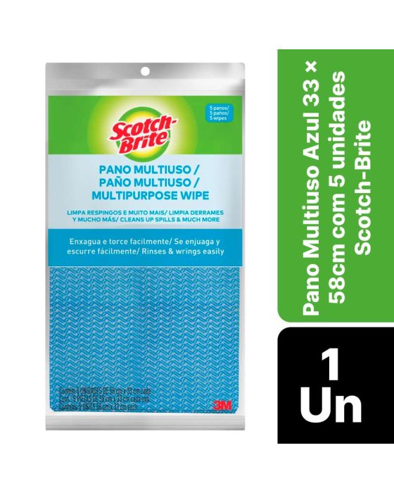 Pano Multiuso Azul 33x58cm C/5un Scotch-brite