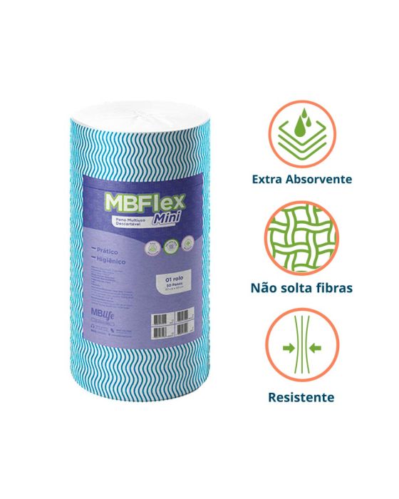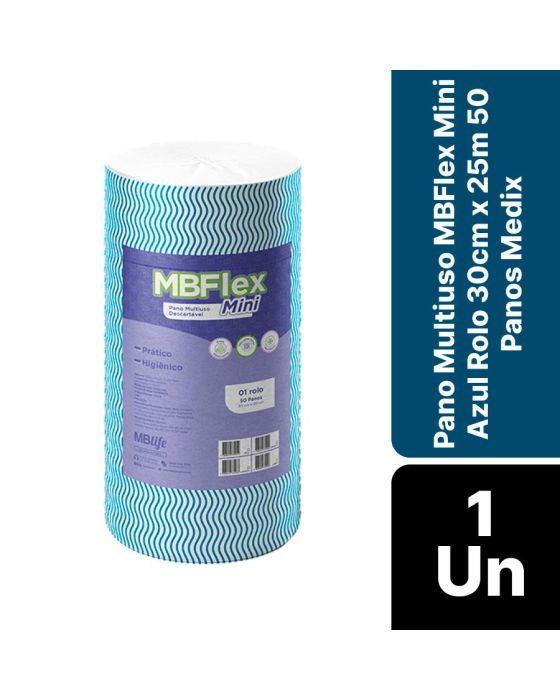 Pano Multiuso Mini Mbflex Azul Rolo 30cm X 25m C/50 Panos Medix