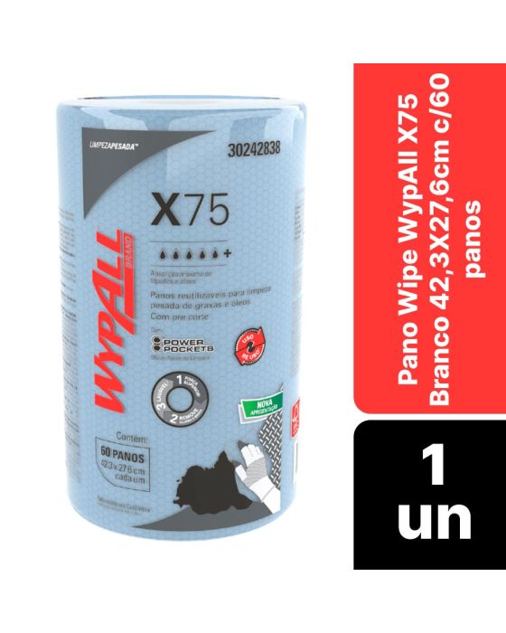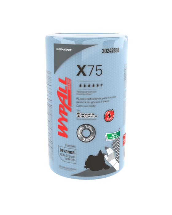 Características:Os panos de limpeza descartáveis WypAll X75, tem uma alta performance na remoção de óleos e graxas. Possui uma alta capacidade e velocidade de absorção de líquidos, e uma alta resistência por sua tecnologia HYDROKNIT, que combina o poder de absorção da celulose e a resistência do polipropileno, sendo a ferramenta ideal para atuar nas tarefas mais simples, até as mais difíceis.Rolo compacto, de fácil transporte e distribuição. Possui tecnologia POWER POCKETS que proporciona um maior poder de limpeza.Detalhes:- Marca: WypAll;- Modelo: X75;- Linha: Panos Descartáveis;- Tipo: Rolo;- Cor: Azul;- Quantidade de panos por rolo: 60 panos;- Contém: 1 unidade do produto;- Tamanho: 42,3 x 27,6cm;- Tecnologia HYDROKNIT e Power Pockets;- Limpeza pesada;- Panos reutilizáveis para limpeza pesada de graxas e óleos;- Com pré-corte;- Absorção máxima de líquidos e óleos.Ideal para: - Ideal para limpeza e secagem de máquinas, equipamentos, aplicação e remoção de químicos em geral.Composição: - Fibras de celulose, Polipropileno, Aditivos de resistência e tinta.Medidas:- Dimensões do produto: 15 x 15 x 28cm (CxLxA);- Peso: 739g.* As especificações podem ser alteradas sem aviso prévio ** Imagem meramente ilustrativa.