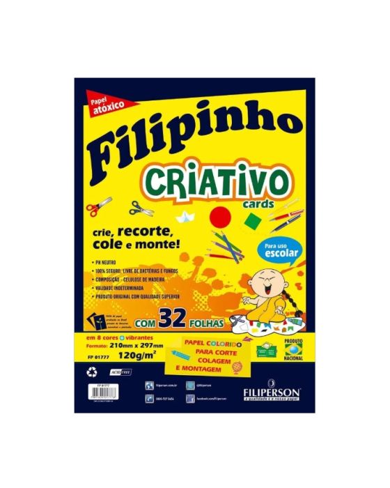 Papel Criativo A4 210x297mm 120g 32fls 8 Cores Filipinho 1777
