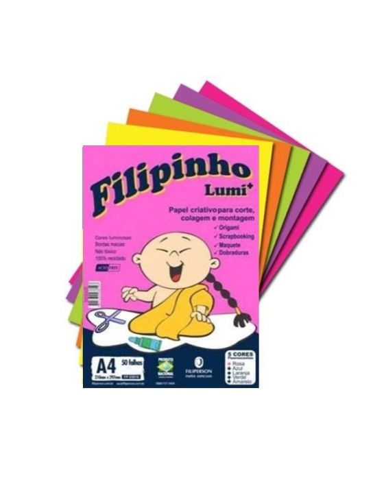 Papel Criativo A4 210x297mm 85g 50fls 5 Cores Lumi Filipinho 3819
