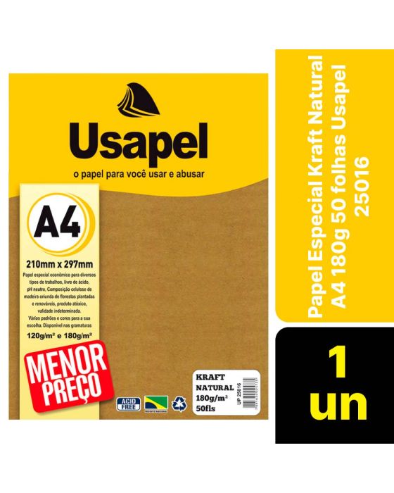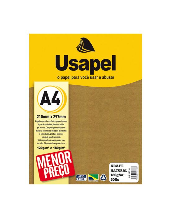 Papel Especial Kraft Natural A4 180g 50fls Usapel 25016