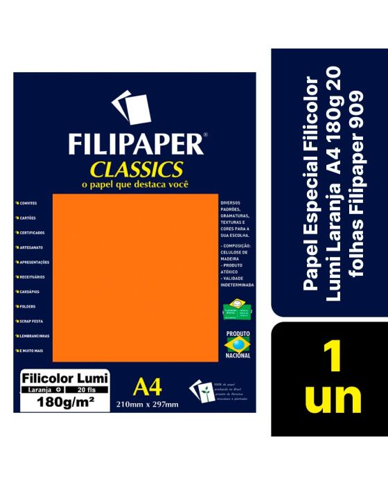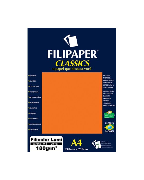 Papel Especial Lumi Laranja A4 180g 20fls Filicolor 0909 Ww