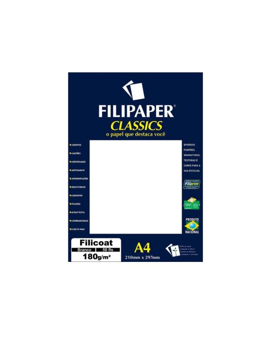 Papel Filicoat A4 180g Branco 50fls Filipaper