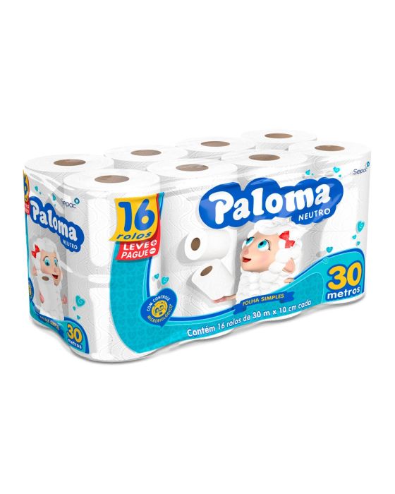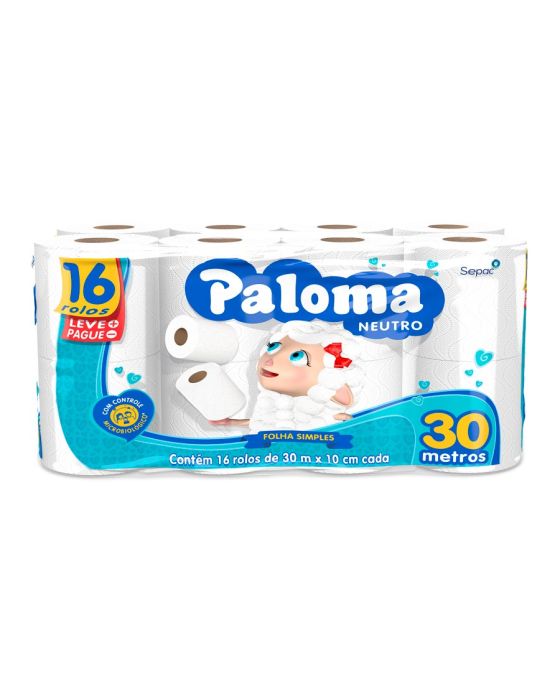 Papel Higienico Folha Simples Neutro Leve 16 Pague 15 Rolos De 30m Paloma