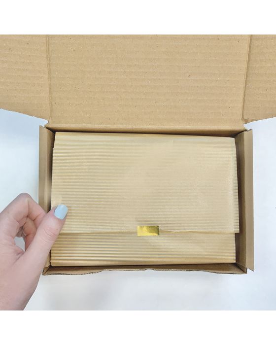 Caracteristicas:- Cor: Ouro com listras- Tamanho: 48 x 60cm- Pacote com 100 folhasAs tonalidades de cores podem variar de acordo com as configurações de seu monitor ou celular* As especificações podem ser alteradas sem aviso prévio ** Imagem meramente ilustrativa