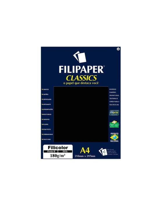 Papel Sulfite A4 180g Filicolor Preto 50fls 3418