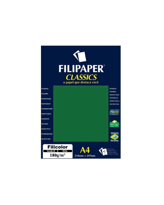 Papel Sulfite A4 180g Filicolor Verde 50fls 3445