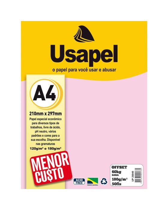 Papel Sulfite A4 180g 60kg Rosa 50fls Usapel