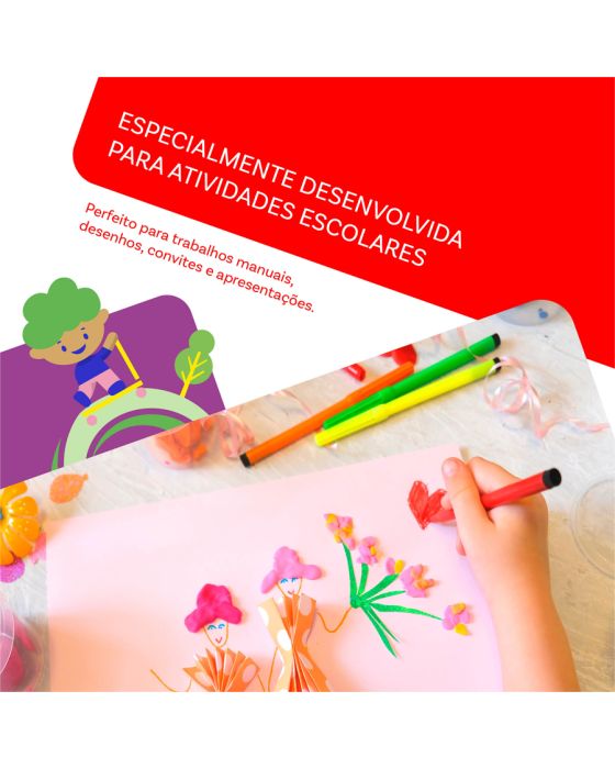 Caracteristicas:Para despertar a criatividade das crianças na escola, em casa ou em qualquer lugar!- Para nós, o papel é o maior símbolo de criatividade que existe. Com ele, toda criança é um artista, um criador, uma inventora. - Ligar os pontos entre as ideias e a nossa imaginação é uma grande diversão.- Disponível em embalagem de 100 folhas.- Embalagem abre e fecha.- É produzido a partir do cultivo de eucalipto 100% renovável.- Formato: A4 (210x297mm)- Gramatura: 75g/m2- Folhas/resma:100- Resma/caixa: 25- Certificação: Cerflor * As especificações podem ser alteradas sem aviso prévio ** Imagem meramente ilustrativa.