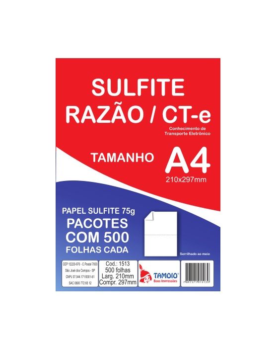 Características- Papel sulfite 75gr com uma serrilha ao meio- Pode ser usado para conhecimento de transportes (CTe), holerite, entre outros- Pacote com 500 folhas- Tamanho A4: 210 x 297 mm (serrilha no meio formato 210 x 145,5 mm)- Folha na cor branca * Imagens meramente ilustrativas