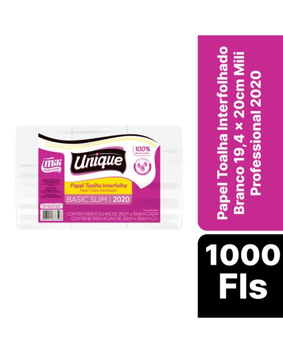 Papel Toalha Interfolhado Branco 19,4x20cm C/1000 Folhas Mili Professional 2020