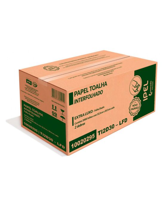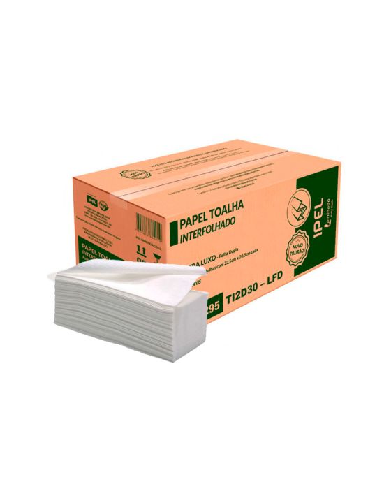 Caracteristicas:O Papel Toalha Interfolhado Folha Dupla Ipel é um papel de alto padrão de qualidade. Proporciona um bom custo x beneficio no uso final do produto.Detalhes:- Marca: Ipel.- Modelo: Interfolhada - 20295.- Linha: Papel toalha.- Tipo: Extra Luxo.- Cor: Branco.- Contém: 8 pacotes c/ 250 folhas cada.- Medidas: 22,5cm x 20,5cm cada.- 100% fibras de celulósicas.Ideal para:- Industrias, restaurantes, empresas e comercio em geral, escolas, Faculdades, orgaos publicos, instituicao privada, clinicas medicas e odontologicas, laboratorios, Hospitais, instituicoes religiosas, etc.Conservação:- Armazenar em lugar seco e arejado.- Produto não perecível.* As especificações podem ser alteradas sem aviso prévio ** Imagem meramente ilustrativa