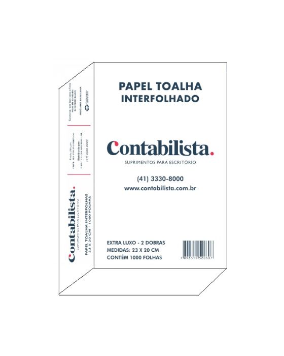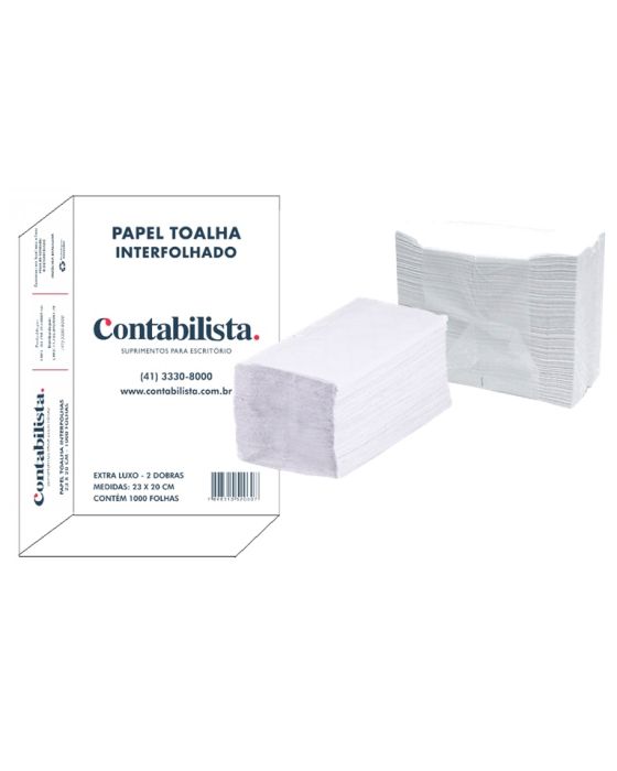Papel Toalha Interfolhado Branco Extra Luxo 23x20cm C/1000 Folhas Contabilista