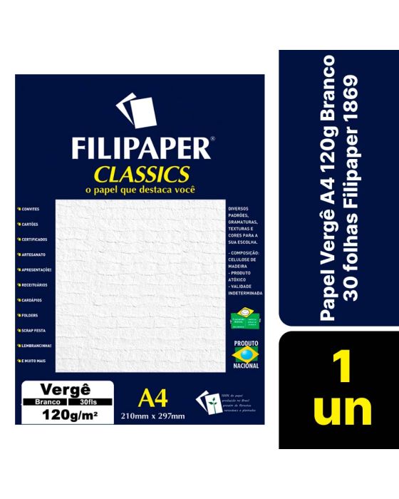 Papel Verge A4 120g Branco 30fls Filipaper 1869