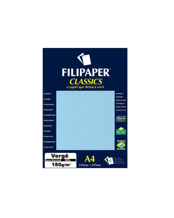 Papel Verge A4 180g Agua Marinha 50fls Filipaper 995
