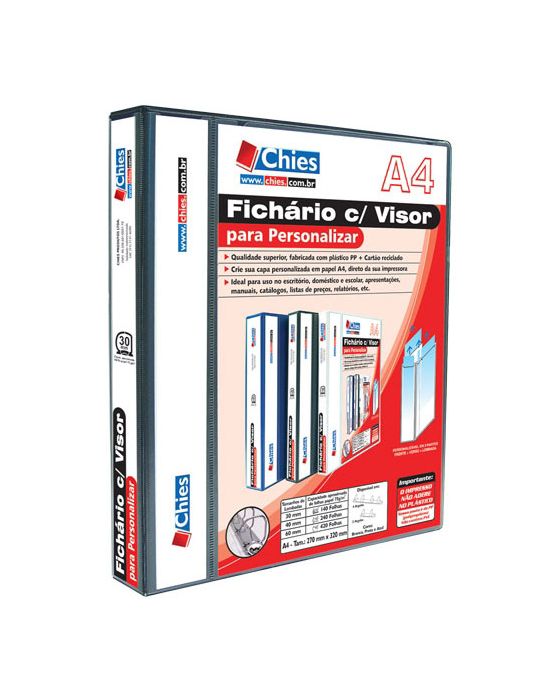 CaracteristicasA maneira mais rápida e economica de personalizar sua pasta.- Personalização em 4 partes com visor transparente Anti-Reflexo, o impresso não gruda no plástico, Não contém PVC. - Com bolso interno c/ porta cartões - Material resistente e sofisticado, capa dura de polipropileno - Produto de fácil limpeza, com ferragem, prático para manuseio e reposição de refis. - Ferragem 25D - 4 Argolas- Tamanho: 27,0 x 32,0 x 3,0 cm- Capacidade aproximada 100 refis de plástico PP ou 400 folhas de papel 75g/m2* As especificações podem ser alteradas sem aviso prévio ** Imagem meramente ilustrativa