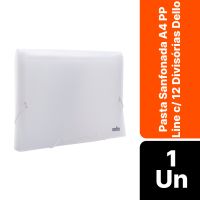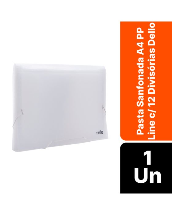 Características:Guardar os seus documentos e categorizar por importância, ordem alfabética ou demais formas de organização ficará ainda mais fácil com a Pasta Sanfonada A4 Line com 12 divisórias Dello, fácil e prática!Detalhes:- Marca: Dello;- Modelo: Line;- Referência: 6079.H;- Linha: Pasta Sanfonada;- Cor: Cristal;- Quantidade de divisórias: 12 divisórias;- Contém: 1 unidade do produto;- Tamanho: A4;- Medidas: 33,5 x 3 x 23,5cm;- Espessura: 0,55 micras;- Fechamento: Elástico.- Acompanha: Etiquetas para identificação das divisórias.- Possui visores;- Design exclusivo Dello.Indústria Brasileira. | Validade: Indeterminada.Ideal para:- Indicado para a organização escolar, ambientes corporativos, comércios e até mesmo em casa.Composição:- Pasta laminada em polipropileno.- Fechamento: Elástico.Medidas:- Dimensões do produto: 33,5 x 4 x 24cm (CxLxA);- Peso: 0,275g.ATENÇÃO! NÃO RECOMENDÁVEL PARA CRIANÇAS DE ATÉ 3 (TRÊS) ANOS, POR CONTER PARTE(S) PEQUENA(S) QUE PODE(M) SER ENGOLIDA(S) OU ASPIRADA(S).* As especificações podem ser alteradas sem aviso prévio ** Imagem meramente ilustrativa.