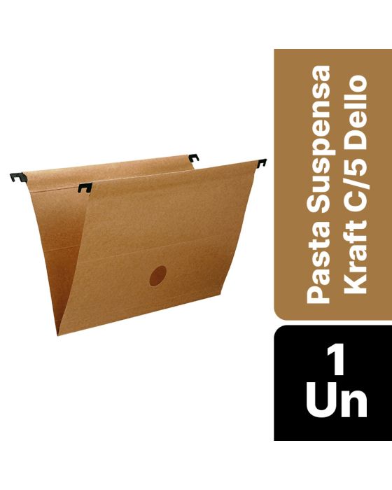 Características:Mantenha os seus documentos bem organizados e categorizados com os visores permitindo achar, quando necessário, o documento do dia a dia com a Pasta Suspensa Kraft Dello.Detalhes:- Marca: Dello;- Modelo: 0002.X;- Linha: Pasta Suspensa;- Cor: Marrom;- Contém: 1 pacote com 5 unidades do produto;- Medidas: 36,1 × 24cm; - Gramatura: 170g/m²;- Espessura: 0,28;- Acompanha visor e etiqueta, grampo plástico e hastes plásticas removíveis;- Possui haste plástica.Industria Brasileira. | Validade: Indeterminada.Diferenciais:- Abas coladas;- Possui 8 posições para grampo e 2 posições para arquivo de saco plástico. Arquiva dois ou mais documentos na mesma pasta;- Visor flexível em PP com espessura de 0,15mm;- Visualização de documentos e sistema de circulação de ar dentro da pasta, através de furo central;- Hastes e grampos reciclados. Produto ecologicamente correto;- Vinco marcador de páginas. Suporte para análise de documentos dentro do arquivo;-Transforma-se em mesa de apoio de documentos sobre arquivos de pastas suspensas.Composição: - Fabricado em papel Kraft.Medidas:- Dimensões do produto: 40,5 x 23,5 x 0,7cm (CxLxA);- Peso: 0,057g.* As especificações podem ser alteradas sem aviso prévio ** Imagem meramente ilustrativa.