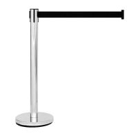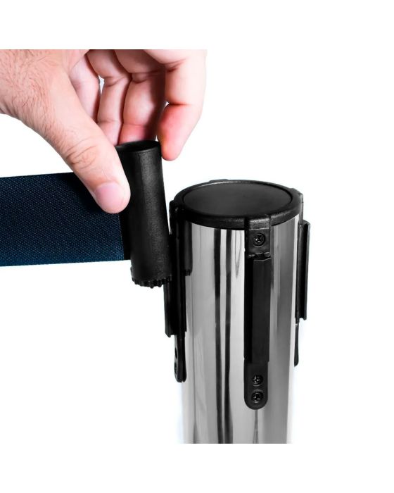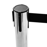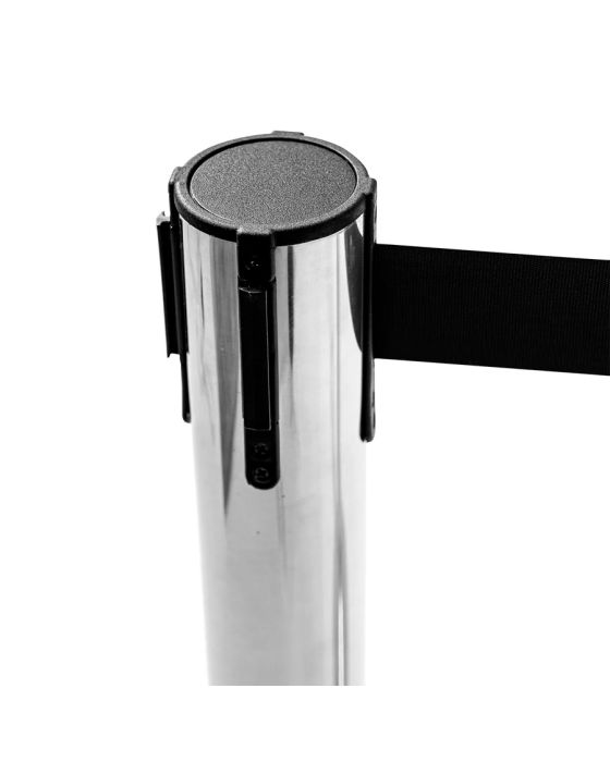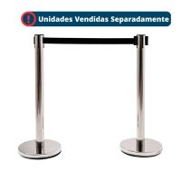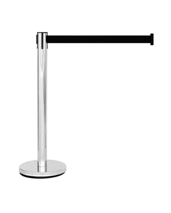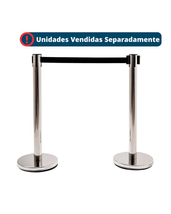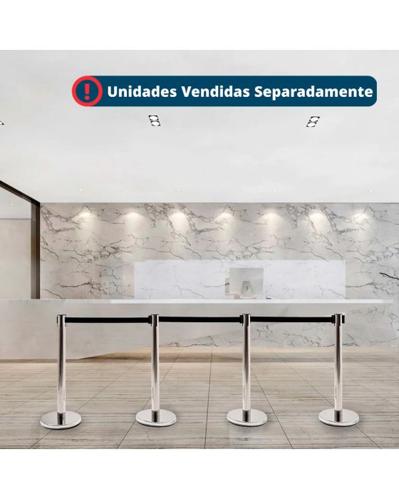 Pedestal Organizador De Fila Cromado C/ Fita Retratil Preta Zeus