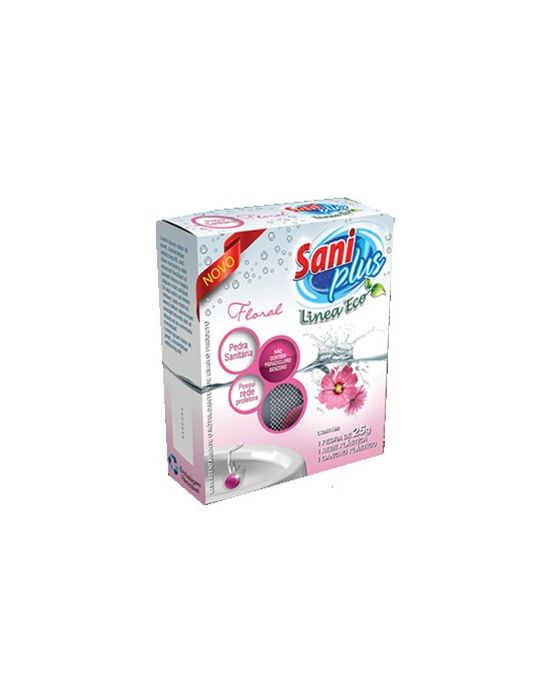 Caracteristicas:Pedra Sanitária com Rede Protetora SaniplusAo contrário das pedras sanitárias comuns, a Pedra Sanitária SaniPlus não contém fosfato, componente que pode agredir a vida marinha ao ser descartado, nem Paradiclorobenzeno, ingrediente potencialmente cancerígeno. Além disso, contém detergente biodegradável, sendo inofensivo ao meio ambiente. - Contém: pedra de 25g, 1 rede plástica + 1 gancho plástico - Fragrância: Floral * As especificações podem ser alteradas sem aviso prévio ** Imagem meramente ilustrativa.