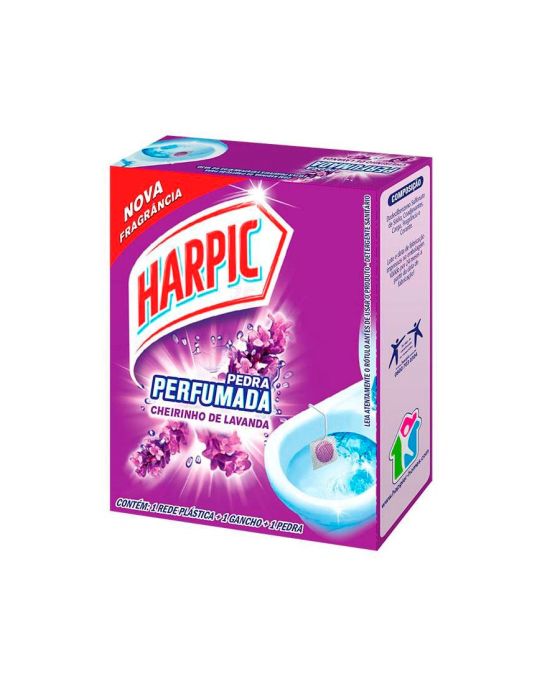 Caracteristicas:Ideal para quem busca limpeza prolongada e economia, a Pedra Sanitária Harpic possui perfume de flores do campo. Fácil de usar, basta encaixá-la na rede de proteção e aplicar na bacia. O detergente sanitário mantém o vaso cheiroso por mais dias com aroma suave e fresco.- Detalhes:- Marca: Harpic- Modelo: Pedra Perfumada- Contém: 1 Rede plástica, 1 gancho e 1 pedra.- Fragrância: Lavanda- Embalagem Super EconomiaOnde usar:- Vasos sanitáriosModo de usar:- Retire o plástico que envolve o produto.- Encaixe a pedra dentro da rede de proteção.- Quebre o gancho na parte mais fina para possibilitar o encaixe na rede.- Encaixe o gancho no furo maior localizado na part superior da rede.- Pendure o gancho na borda do vaso onde o fluxo de água é amior.Composição:- Dodecilbenzeno Sulfonato de Sódio, Coadjuvantes, Carga, Fragrância e Corante.Conservação: - Conservar o produto em lugar seco.CONSERVE FORA DO ALCANCE DAS CRIANÇAS E DOS ANIMAIS DOMÉSTICOS.* As especificações podem ser alteradas sem aviso prévio ** Imagem meramente ilustrativa.