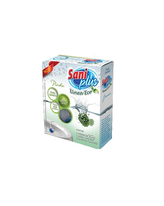 Caracteristicas:Pedra Sanitária com Rede Protetora SaniplusAo contrário das pedras sanitárias comuns, a Pedra Sanitária SaniPlus não contém fosfato, componente que pode agredir a vida marinha ao ser descartado, nem Paradiclorobenzeno, ingrediente potencialmente cancerígeno. Além disso, contém detergente biodegradável, sendo inofensivo ao meio ambiente. Contém: pedra de 25g, 1 rede plástica + 1 gancho plástico Fragrâncias: Pinho * As especificações podem ser alteradas sem aviso prévio ** Imagem meramente ilustrativa.